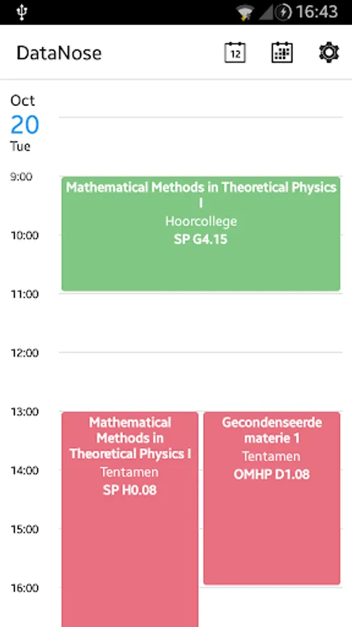 You can synchronize your timetable on your phone. This way you can access your timetable in any calendar app! Note thatthis feature still contains some bugs. If the calendar called "Datanose" is messed up Because of this, you can always delete it in your native calendar app and try again.