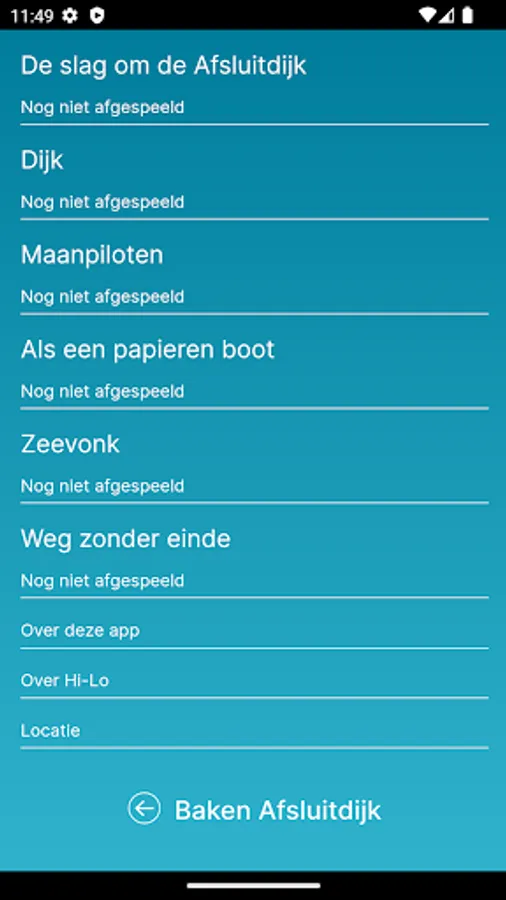 Baken Afsluitdijk biedt zes verhalen op muziek die een ode aan de Afsluitdijk brengen. Ze zijn via deze app uitsluitend te beluisteren bij het rijden over de dijk met de bus of de auto. De luisteraar wordt tijdens de kaarsrechte rit tussen Waddenzee en IJsselmeer even meegenomen naar een heel ander universum.