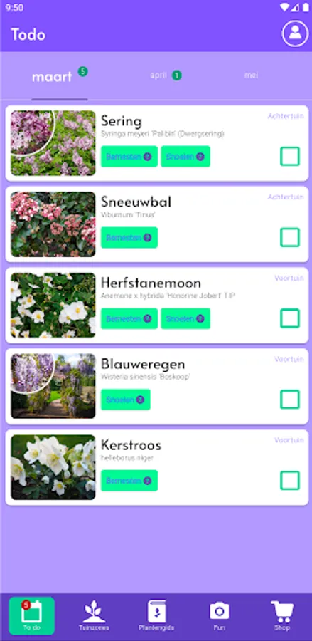 The app then shows you what to do in your garden per month under To Do. Moreover, with our app you will never forget which plants are in your garden!