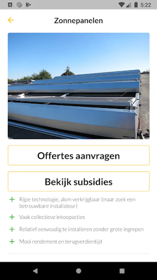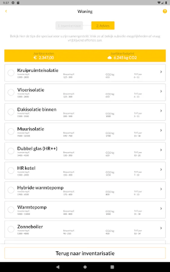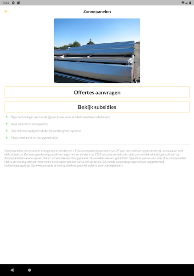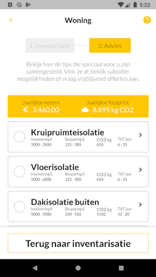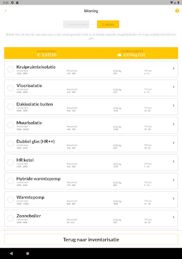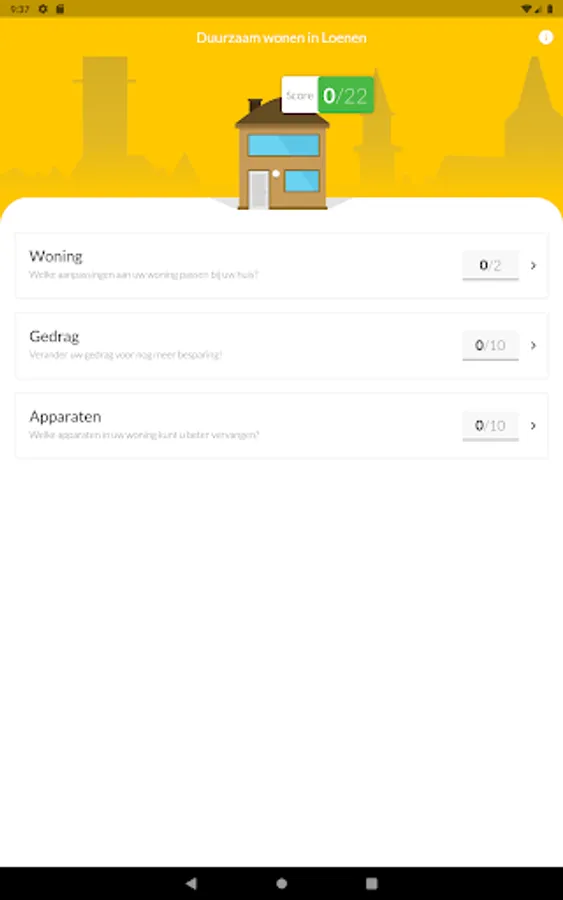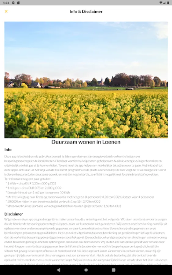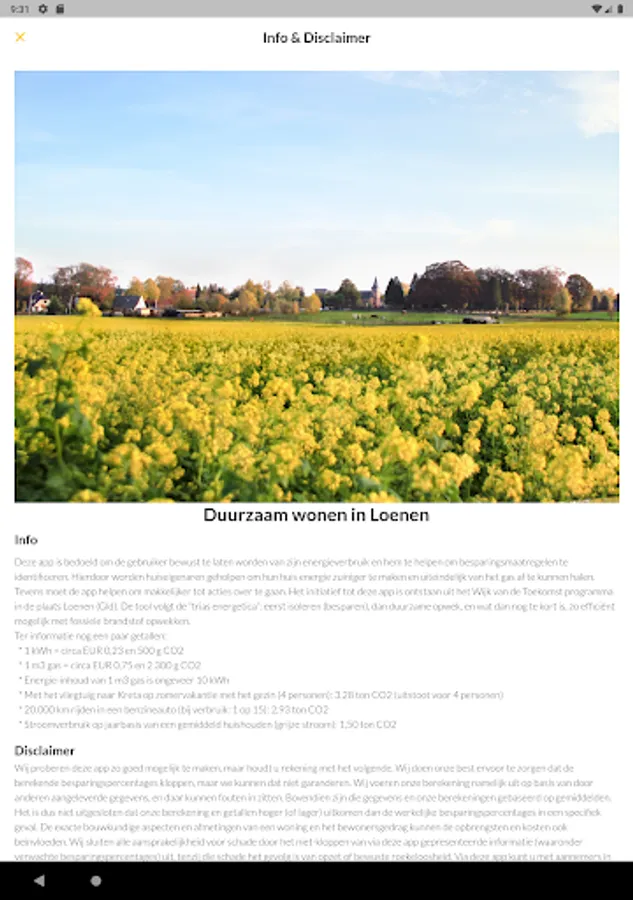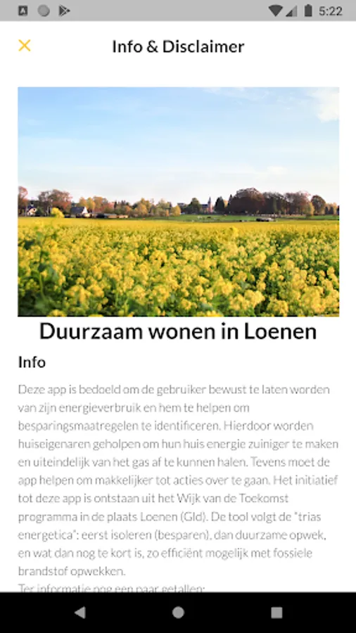 This app helps the residents of Loenen with saving energy in and around the house. The app provides tips on the use of devices and your own behavior. And based on your energy consumption and the characteristics of your house, you will see improvement measures (such as roof insulation, wall insulation, solar panels, heat pump, double glazing) that make your house more energy efficient. Hereby an indication is given of the saving on your energy bill, the investment costs and the reduction of your CO2 footprint. All this together determines your Energy Score. For each relevant measure you can read the advantages and disadvantages and see which subsidies are possible. Finally, you can contact a potential supplier for a quote. The information presented is an indication of the options and will differ per situation in practice. We hope to help you one step further with saving energy, reducing your CO2 footprint and ultimately making your home gasless.