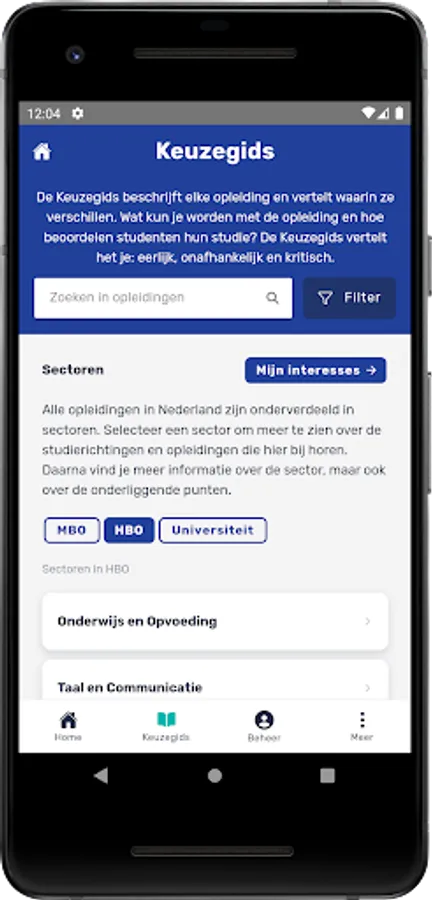 The Study Choice App is the app for students who are getting started with their career orientation. Supported by Keuzegids and Lyceo LOB (formerly Yubu and DeDecaan.net).