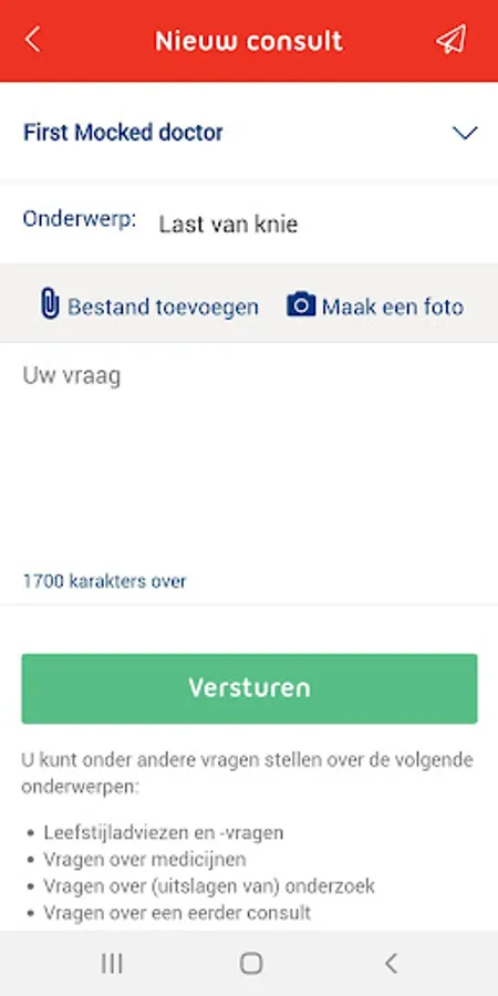 • Send your medical questions directly to your doctor via an eConsult and receive a message as soon as your consultation is answered. Pay attention! eConsult is not intended for urgent matters or life-threatening situations. If you are unsure about the seriousness of your complaint, always contact the GP by telephone.