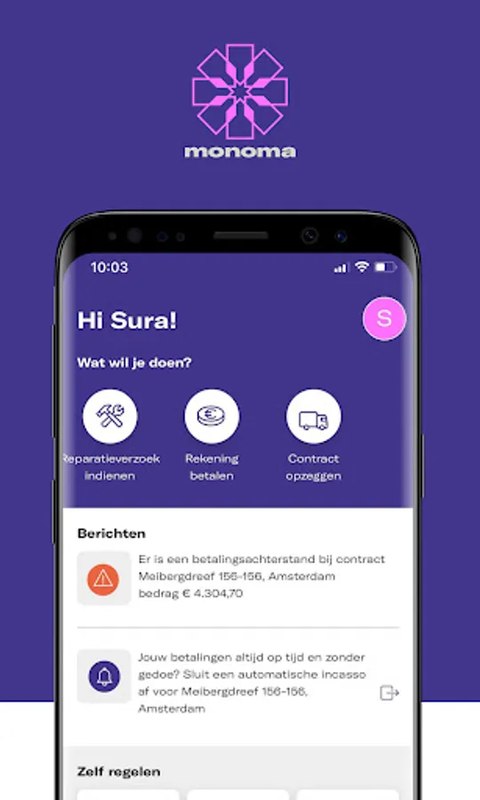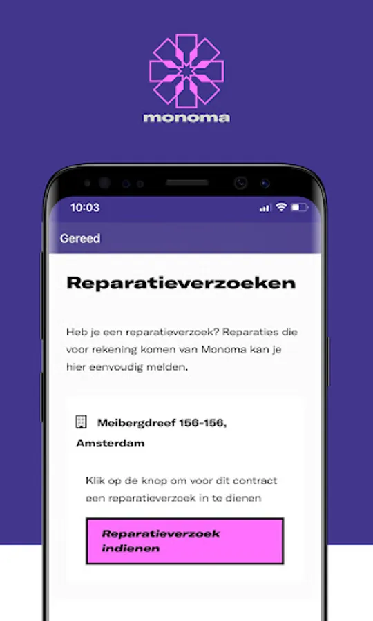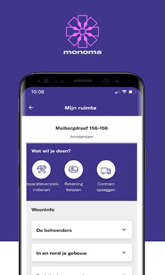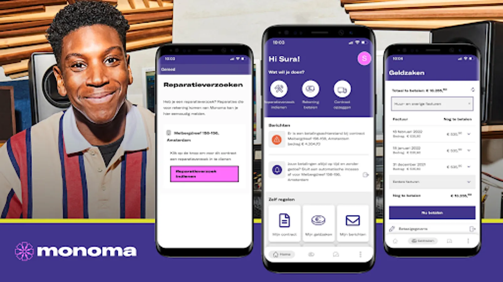 Do you have a living or working space with Monoma? Arrange everything regarding your living or working space quickly and easily with the My Monoma app. Whether you want to pay the rent, request repairs or change your personal information, the My Monoma app is your portal to your Monoma space.