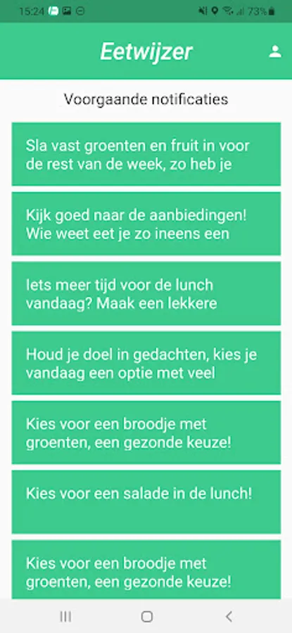 The EetWijzer app sends messages that can help achieve a chosen goal (e.g. eat more vegetables and fruit) based on GPS location. Participants therefore receive help where or at a time when they can use that help.