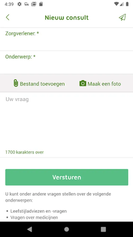 • Ask your medical questions directly to your doctor via an eConsult and be notified as soon as your consultation is answered. Pay attention! eConsult is not intended for urgent matters or life-threatening situations. If you are unsure about the seriousness of your complaint, always contact your doctor by telephone.