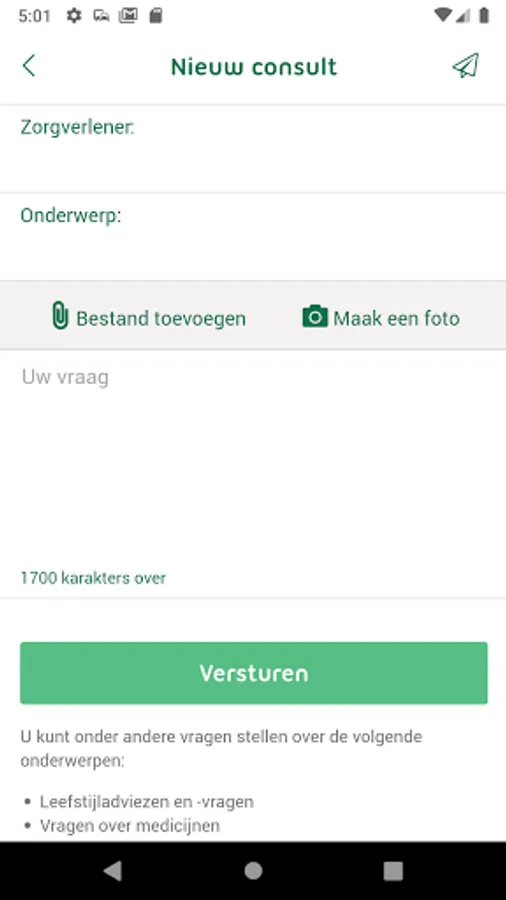 • Ask your medical questions directly to your doctor via an eConsult and be notified as soon as your consultation is answered. Pay attention! eConsult is not intended for urgent matters or life-threatening situations. If you are unsure about the seriousness of your complaint, always contact your doctor by telephone.