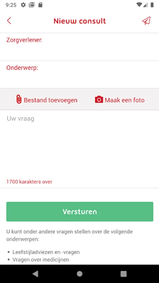 • Ask your medical questions directly to your doctor via an eConsult and be notified as soon as your consultation is answered. Pay attention! eConsult is not intended for urgent matters or life-threatening situations. If you are unsure about the seriousness of your complaint, always contact your doctor by telephone.