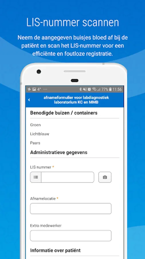 - You scan the LIS number that you stick on the tubes and record a number of data