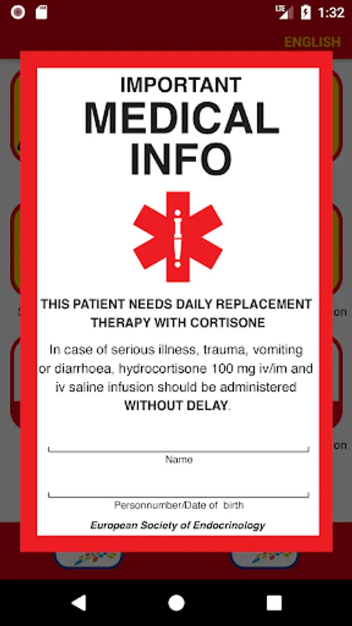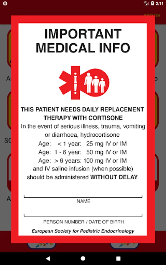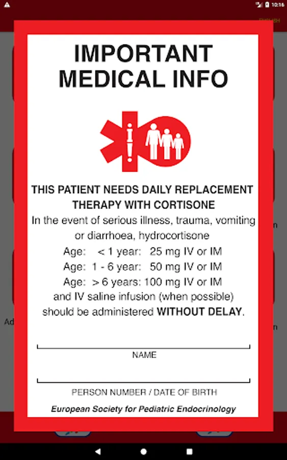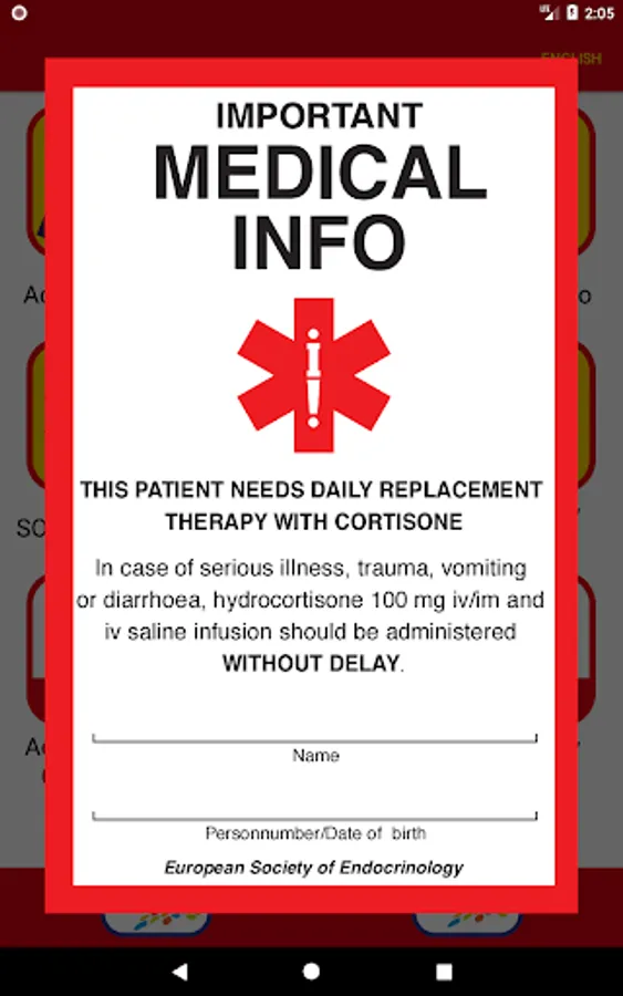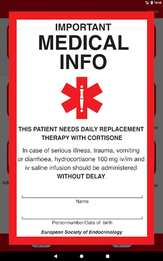 The app on a smartphone makes it possible to explain instantly that the patient has adrenal insufficiency and that he is dependent on hydrocortisone. This means: "inject first, talk later", and that is an essential instruction for the ambulance crew and for the staff in the emergency department.