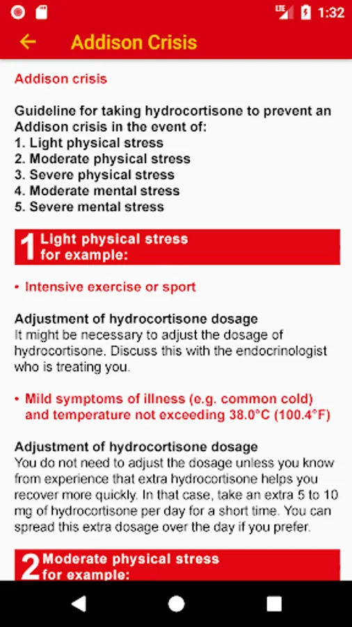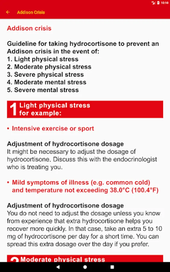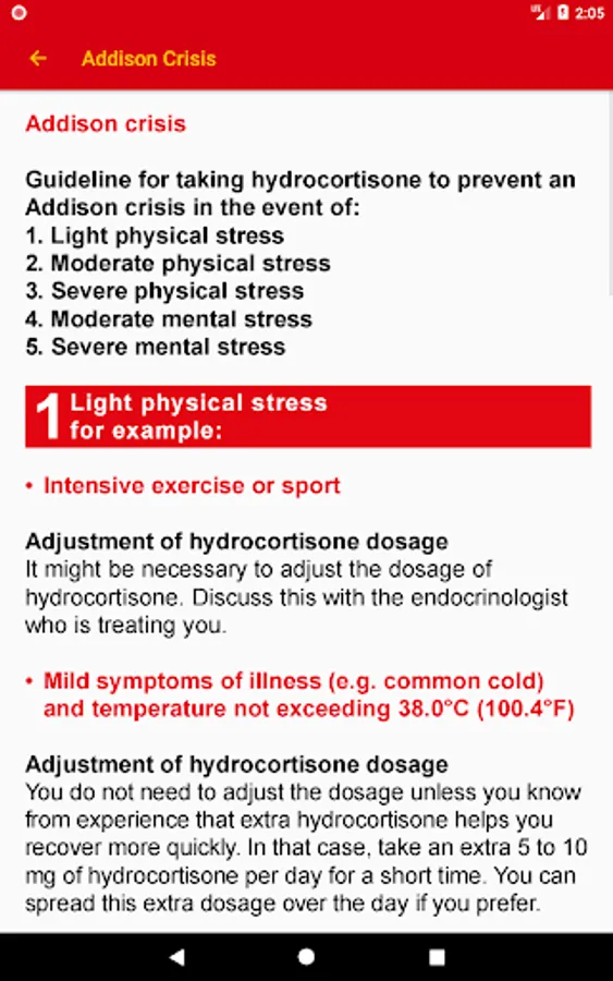 An adrenal crisis (or Addison crisis) is not on anyone's wish list, so the endocrinologists make instructions available about how to avoid one. With the AdrenalAPP you will always have these instructions at hand.
