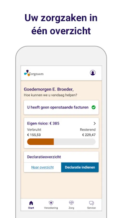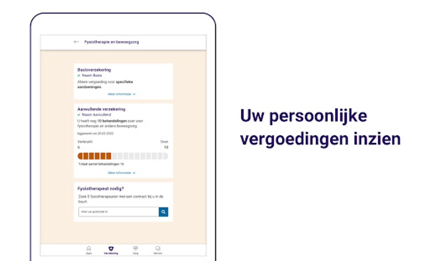 Healthy living is not always easy. That is why we are happy to help you with useful services related to health. And do you still need care? Then you can quickly and easily arrange your healthcare matters via our app. For yourself or for others on your policy.