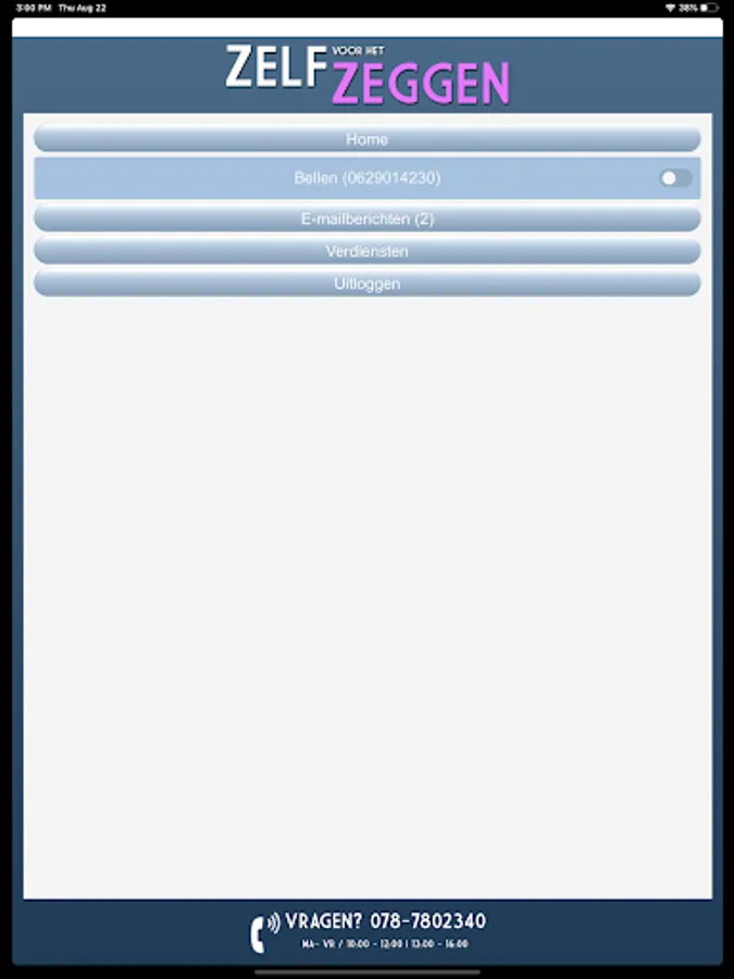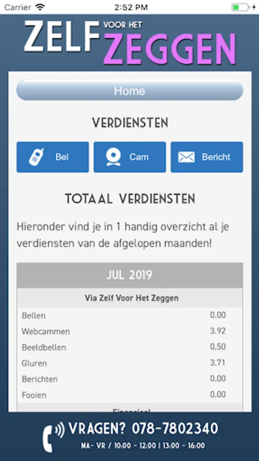 This is the ladies app of ZelfVoorHetZeggen.nl. With this app you can easily turn yourself on and off on our platform, or quickly check your earnings!