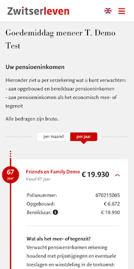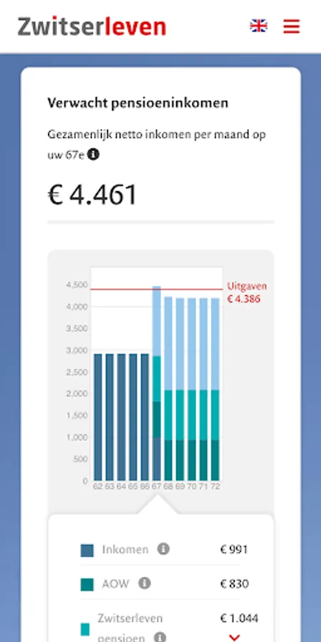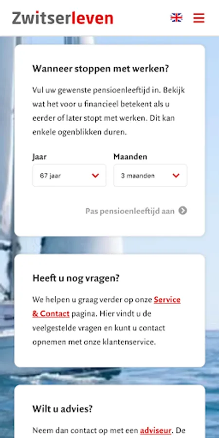 Within the MijnZwitersleven app you get insight into your current pension situation and other pension data. In addition, it is possible to try out different scenarios to gain insight into what effect these adjustments have on your financial future. For example, look at what it means for you if you would like to stop working earlier or work less. It is also possible to adjust your pension situation via the app.
