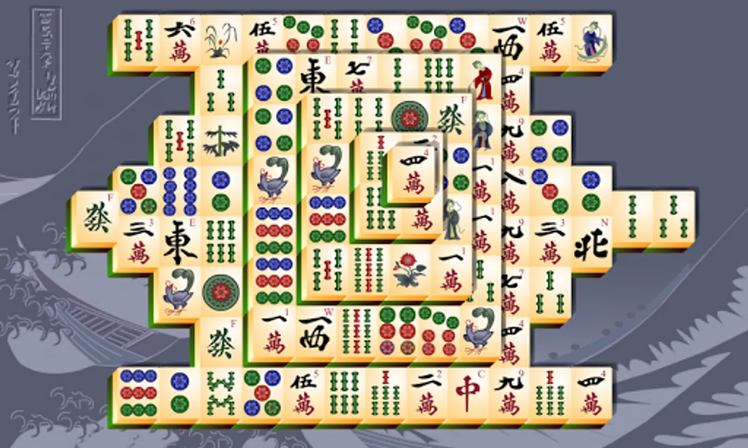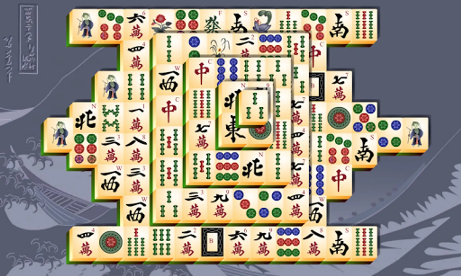 A classic Mahjong game. Combine two of the same mahjong stones to remove them from the playing field. You only can use free stones. A free stone is not covered by another stone and at least one side (left or right) is open.