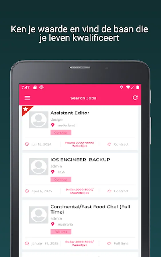 Daily a new offer with current vacancies;