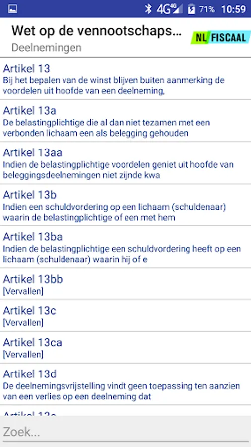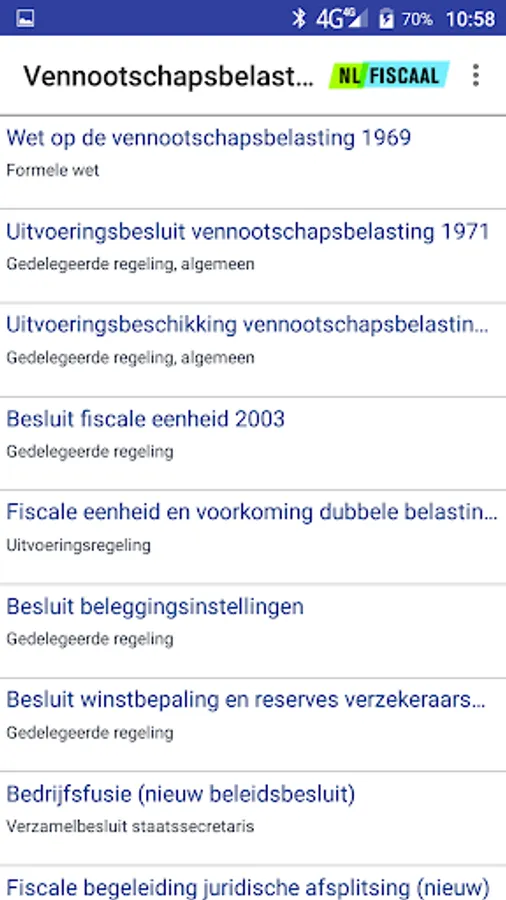 The NLFiscal Laws app contains the texts of all Dutch Fiscal laws, implementing orders, implementing decrees and tax treaties.