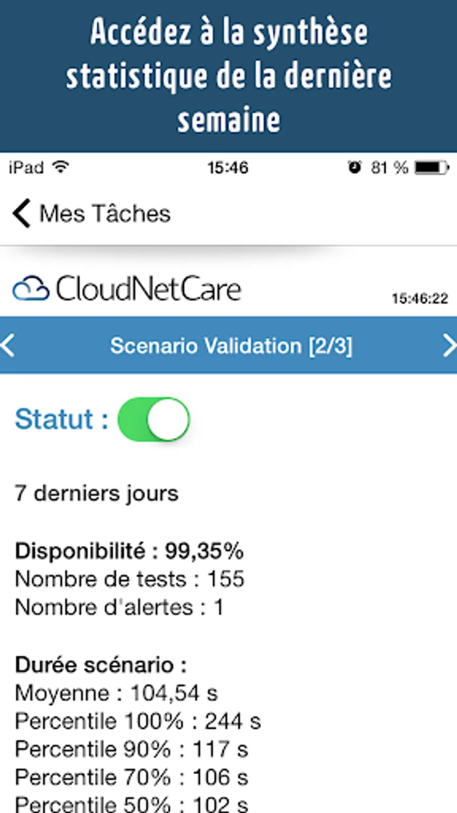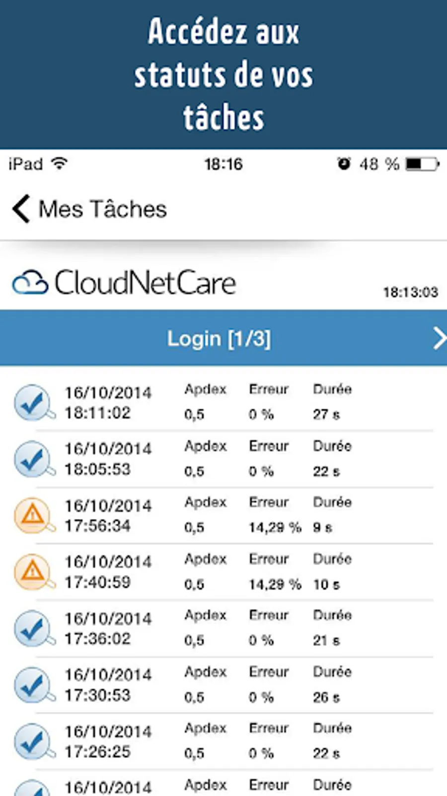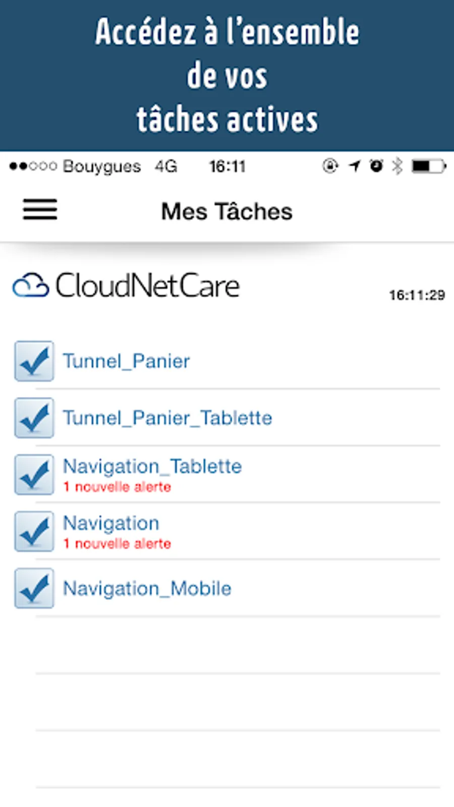 The CloudNetCare application can log into your account and CloudNetCare monitor in real time the active supervision tasks on your websites.