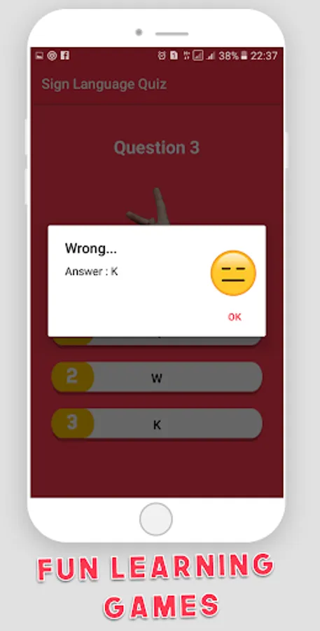 In sign language quiz app, you will find gestures for alphabets, numbers and also a few everyday words. This application can also easily serve a daily guide for sign language and you can refer to it when you want the cards to be saved offline