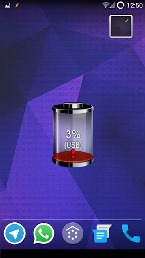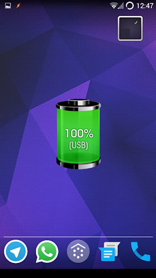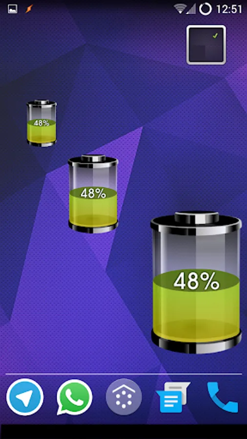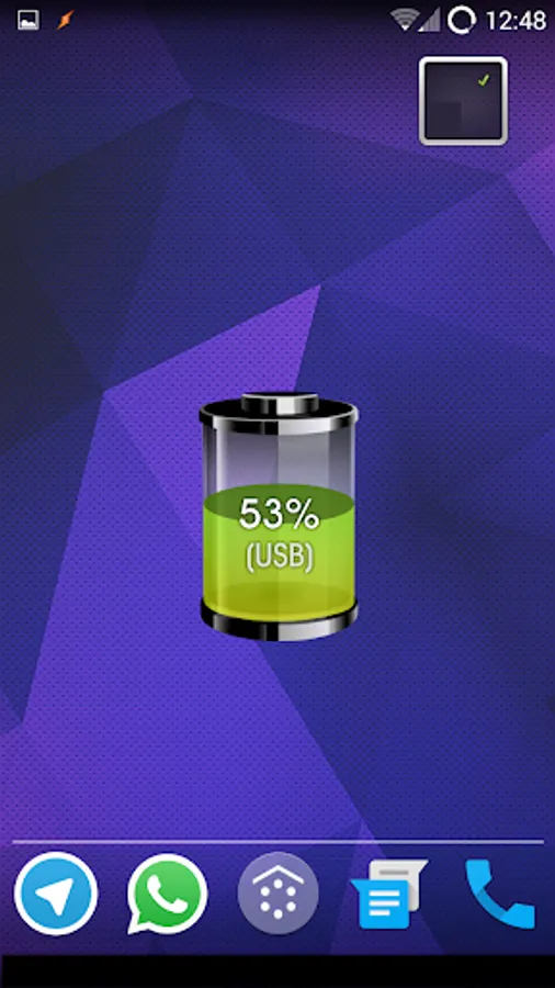 Shows the percentage of battery in the widget and the connection type.