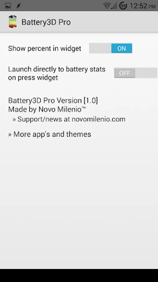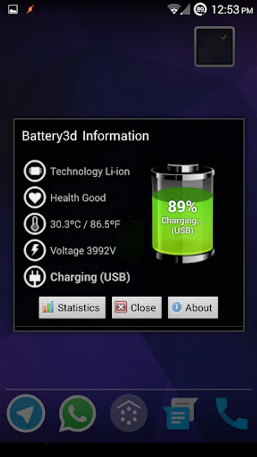 You can tap the widget to get more battery info: temperature, health, voltage, conection info,...,and quick access to device battery stats.
