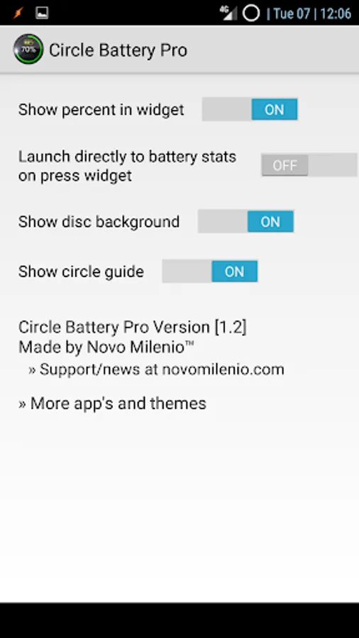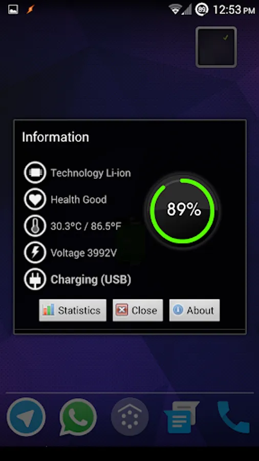 You can tap the widget to get more battery info: temperature, health, voltage, conection info,...,and quick access to device battery stats.