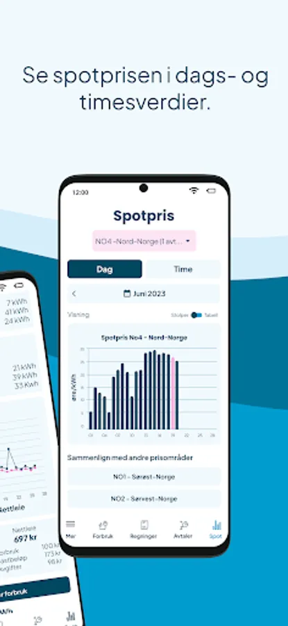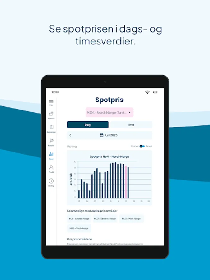 — See the spot prices in the graph and table per hour and day; both historical and established price until midnight the next day.