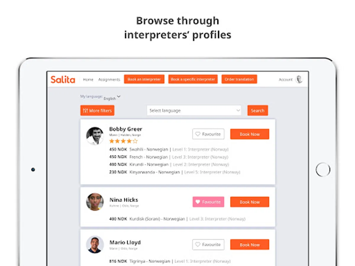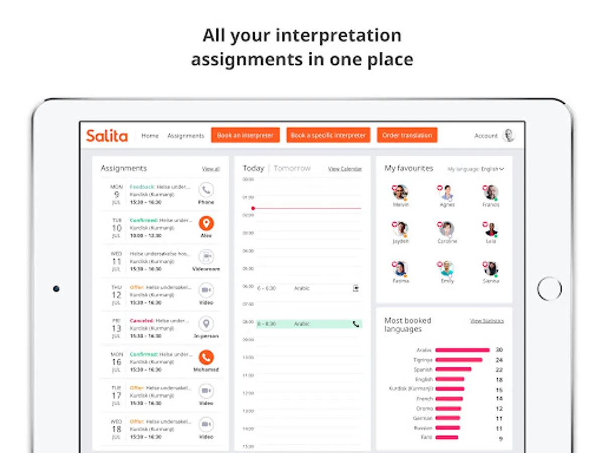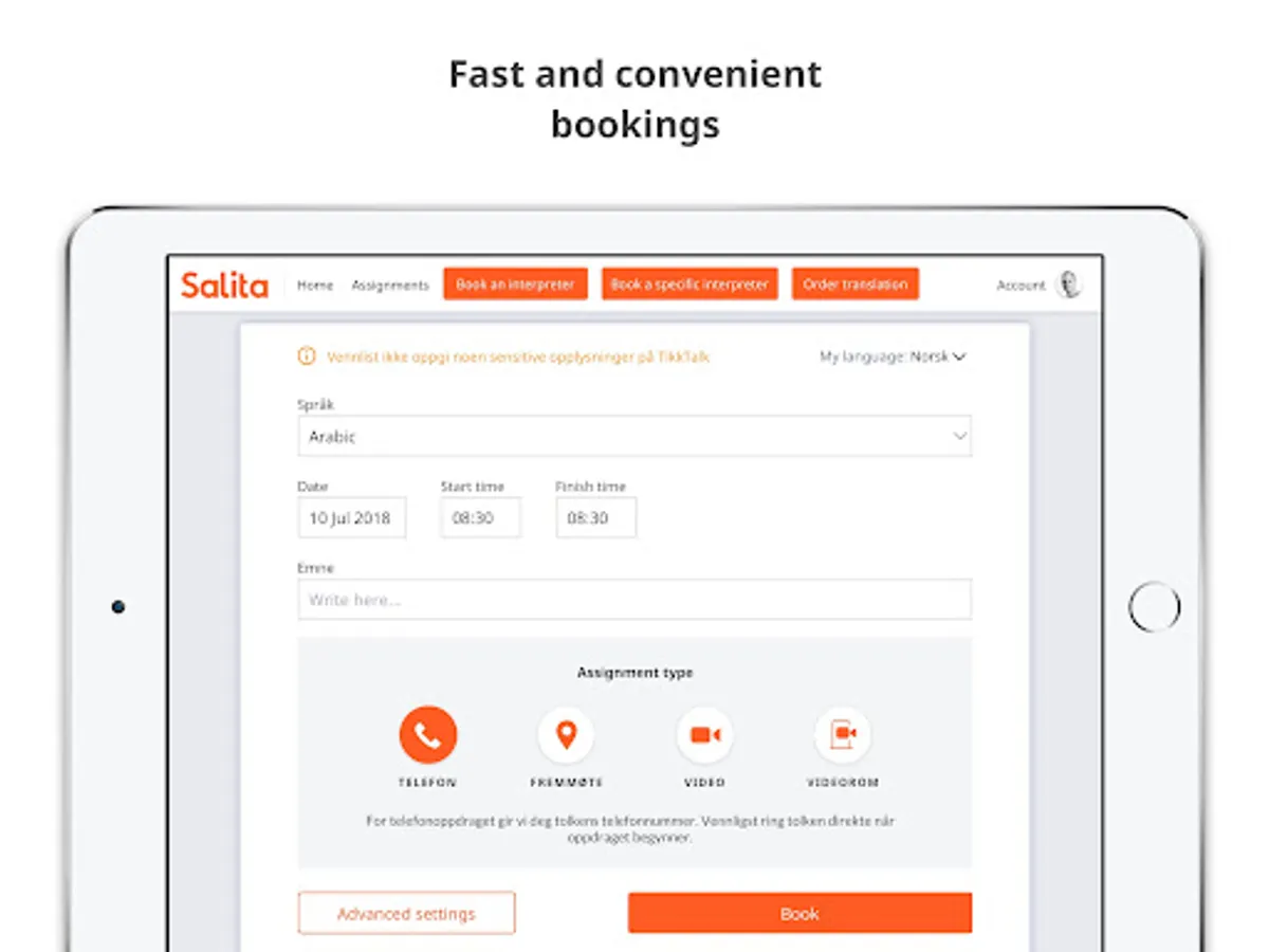Our interpreting service is one of Norway's largest private nationwide providers of language services. SALITA provides interpreting services and translates documents in over 150 languages. The customers' language challenges are solved with the help of tailor-made services performed by quality-assured, experienced interpreters and translators in most languages and dialects.
