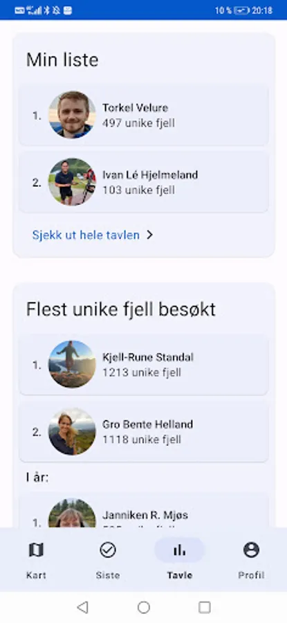 Do you like hiking on the same mountain every time? There's a leaderboard for that as well! Who's the champion of Galdhøpiggen?