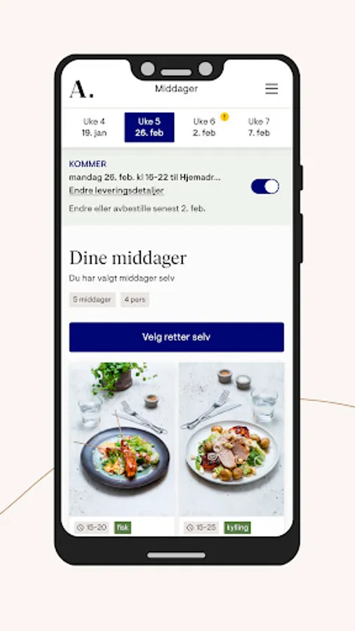 With quality ingredients and exciting flavor combinations, Adam and his team compose recipes that make it easy to conjure up tasty and tempting dinners. There is no binding, you can change your lunch boxes whenever you want, or put together your own menu. The booking deadline is Tuesday at. 23.59 and delivery is on Sunday or Monday. The goal is to give you the same love of food that our farmers put into their produce.