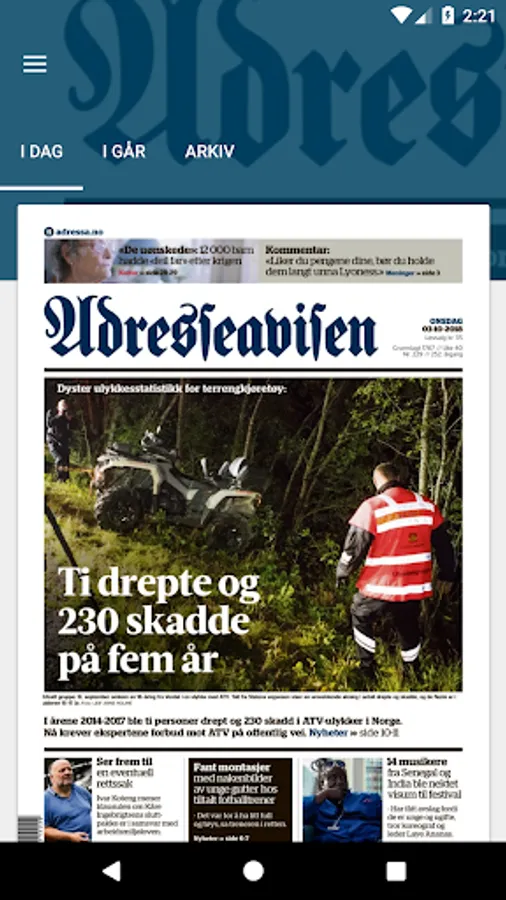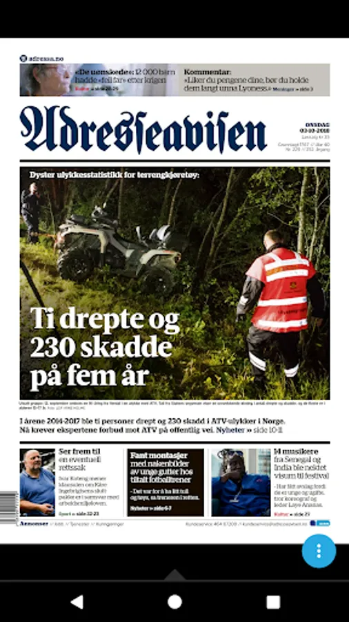 With eAdressa app you can buy and download the print edition digitally adapted to your Android phone or tablet computers. Download the app today and get the first newspaper for free. Access to eAdressa is included for all our subscribers.