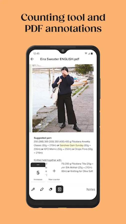 Stay on top of all your knitting projects: those you might want to do, those in progress, and finished ones. With the KNIT app, you always have the information you need right at your needle tips: The pattern, which yarn you have used with color codes and batch numbers, sizes, needle types as well as your own notes and annotations.