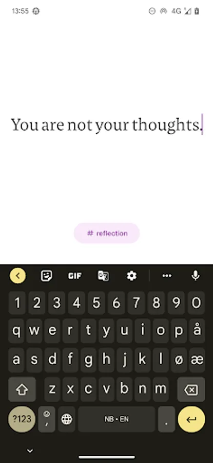 The app Refleksjon lets you quickly write down fleeting thoughts, intentions, frustrations or quotations for later reflection. Write, reflect, re-articulate.