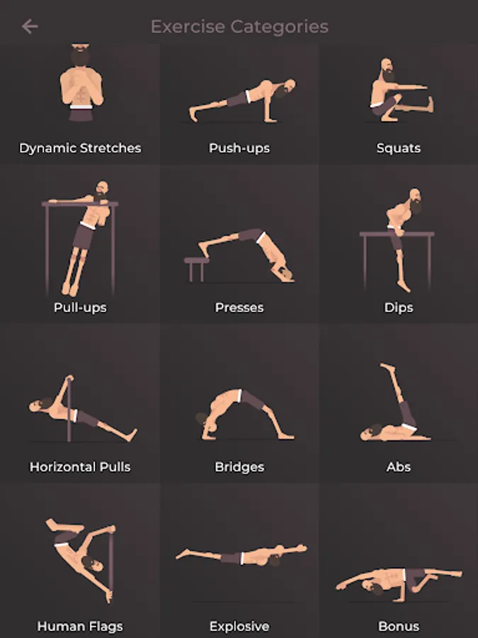 Work out alongside an animated Al as he takes you through more than 40+ unique workouts and 90+ different progressive bodyweight exercises.