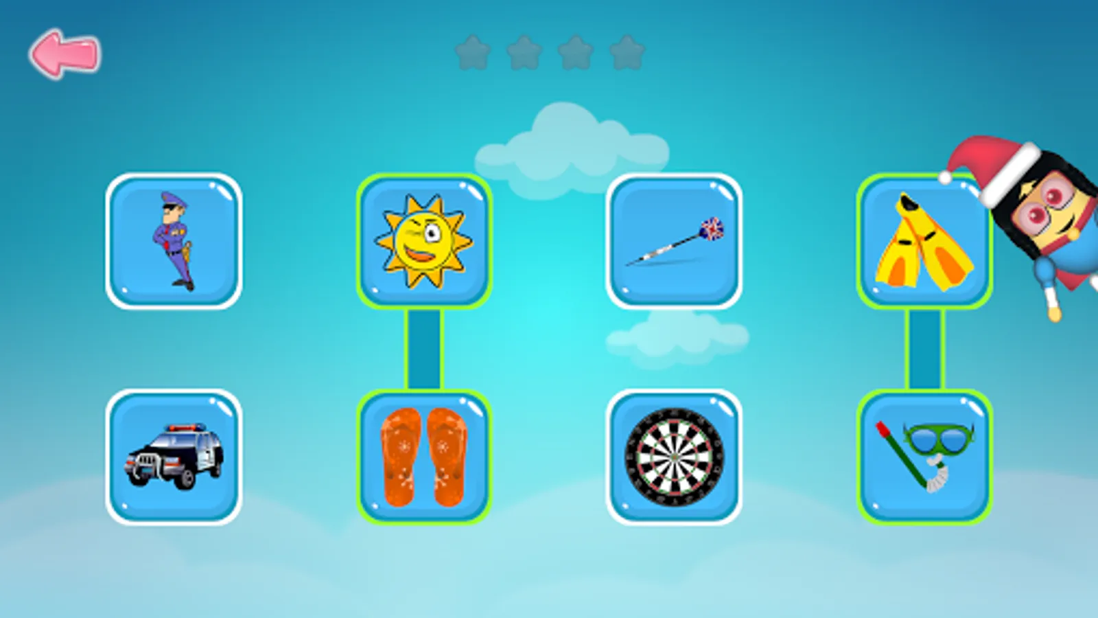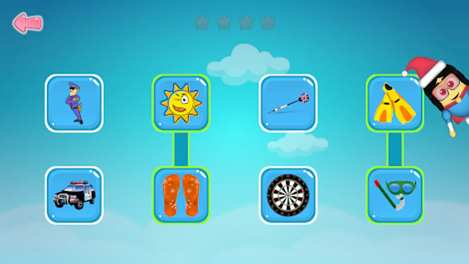 To make it a little extra appealing to children, we've added a system where you collect stars for each correct answer. These stars can be used to unlock outfits for a character who follows the child during the game.