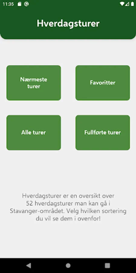 Stavanger has 52 daily trips you can go. This app contains a searchable list of these trips with map display and the ability to tag trips as favorites.