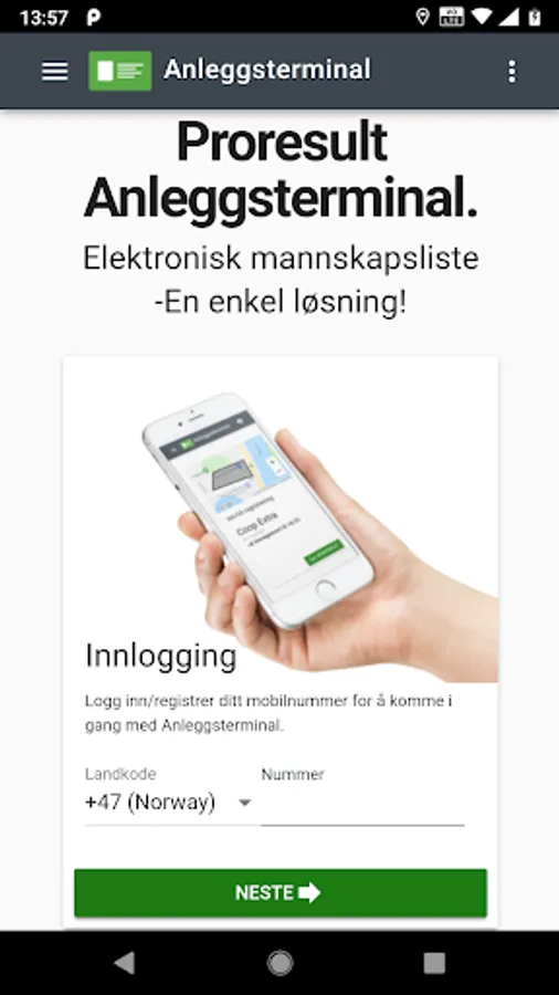 Construction terminal for your mobile phone allows you to register in / out in the electronic crew list from your mobile phone.