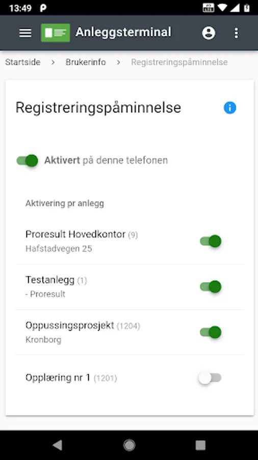 To activate the registration reminder when you arrive / leave the construction site, the Construction Terminal must have access to your background position. You will therefore be asked to provide such access if you have not already done so.