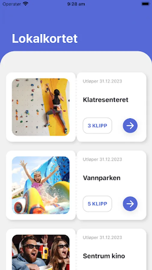 In the app you will find tickets (clips) that can be used to pay for access to e.g. the local cinema.