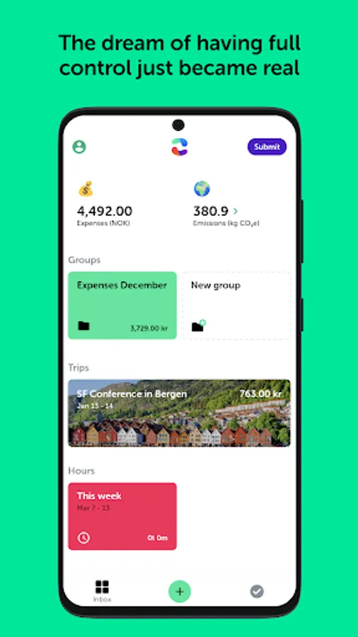 • One-tap experience to create an expense or mileage on the go