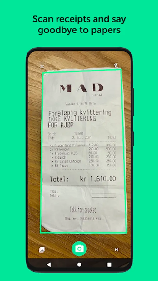 • Automatically extract data from all kinds of receipts – both digital and paper