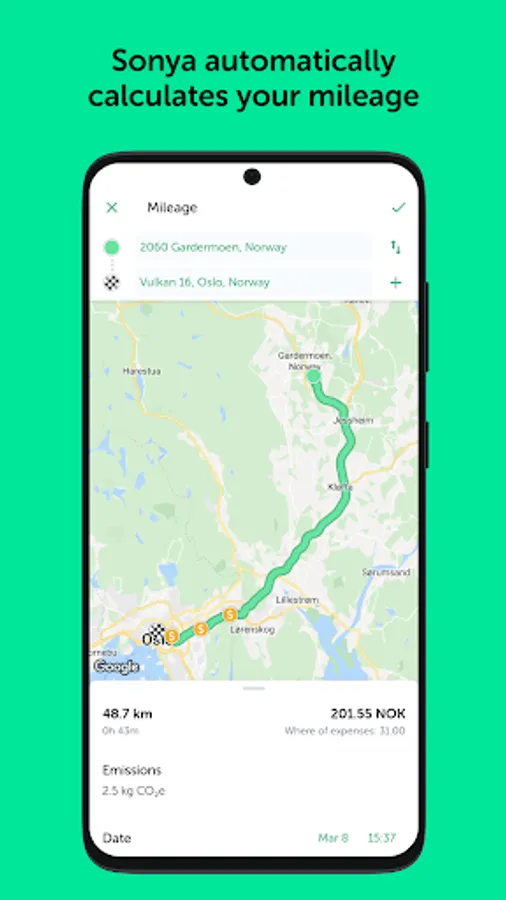 • Track mileage using Google Maps with support for road tolls and round trips