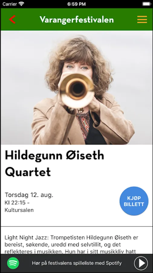 The app is now updated for the Varanger Festival 2021 and gives you a full overview of the program and the artists of one of Northern Norway's largest festivals. Now you can take the program with you wherever you go. Buy tickets with your mobile and get practical information about this year's festival.