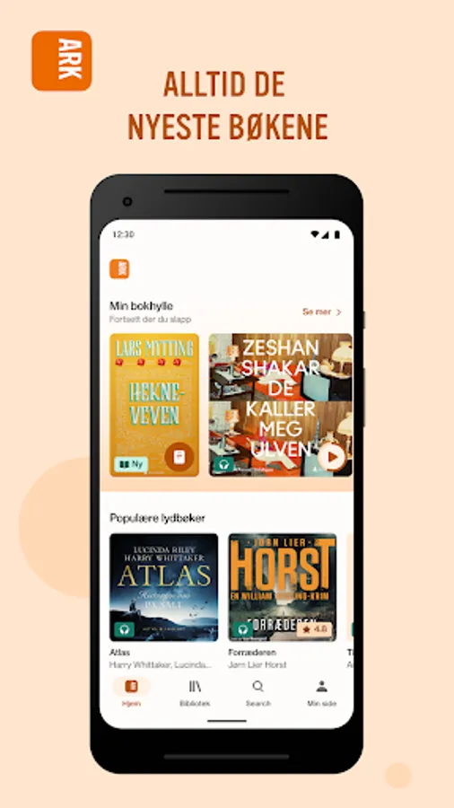 • Buy digital books at ARK.no and you can read and listen to them in the app