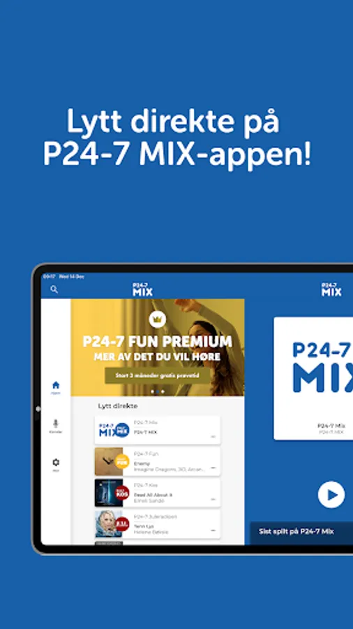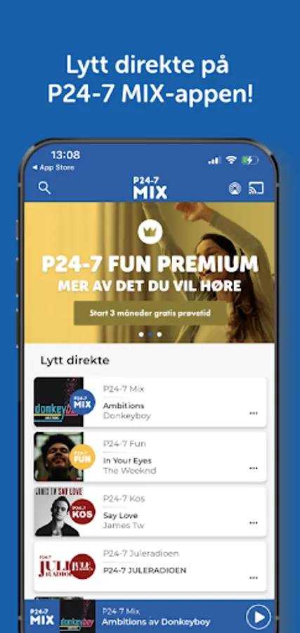 We are always looking for ways to give you even more - let us know what features you want. If you would like to get in touch with us, please do so via email (support@bauermedia.no) or Facebook www.facebook.com/p247mix and we are happy to give us feedback on whether you like this app!