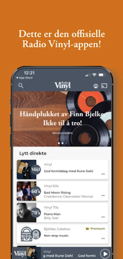 This is the official Radio Vinyl app! It can be a good alternative to DAB + radio while on the move. Radio Vinyl gives you the greatest of all time! The very best music from the 50s, 60s and 70s.
