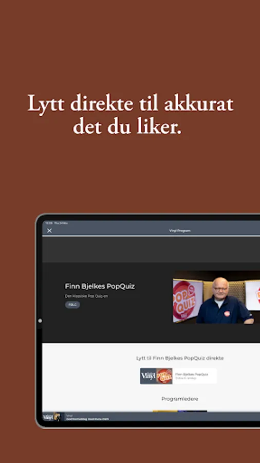 We are always looking for ways to give you even more - let us know what features you want. If you want to get in touch with us, please do so via email (support@bauermedia.no) or Facebook www.facebook.com/RadioVinyl.no and we are happy to give you feedback on whether you like this app!
