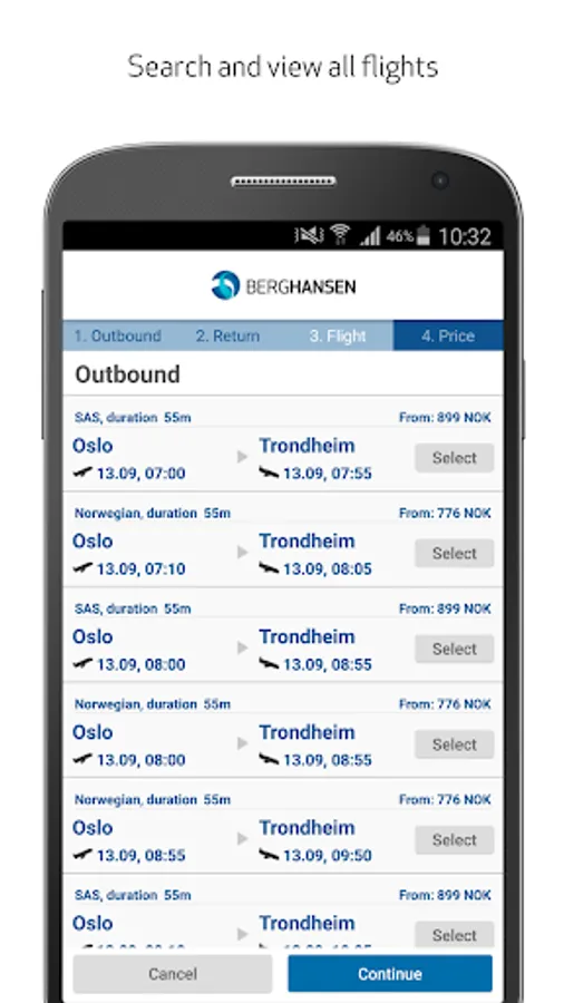 Our app gives you a complete overview of all your active trips booked at Berg-Hansen, whether you booked your trip online or with one of our travel advisors.