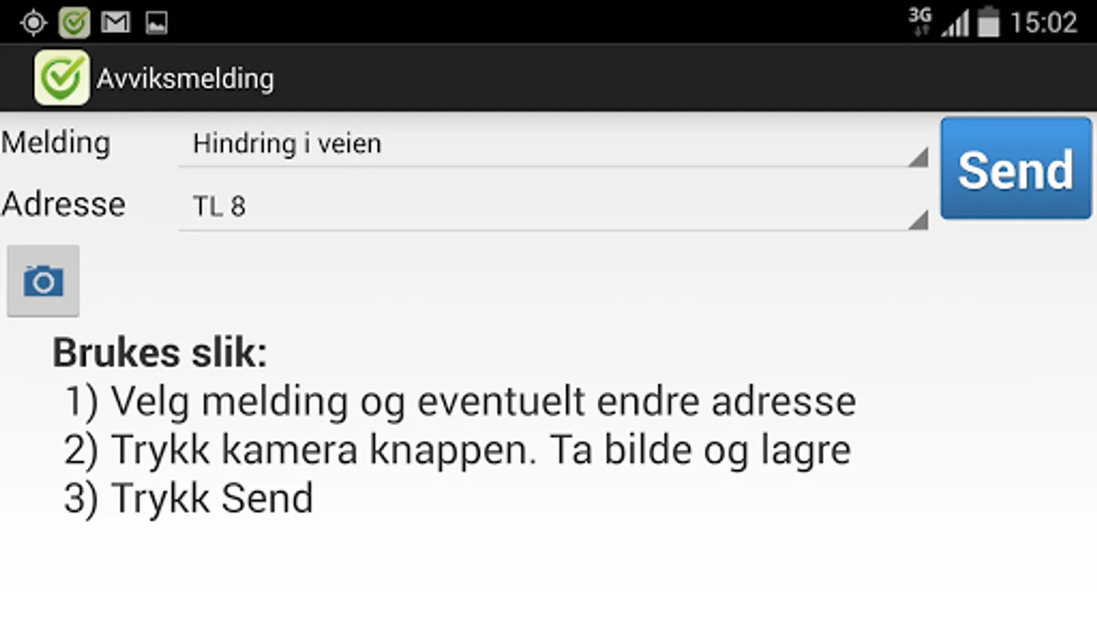 In addition, one can register discrepancy reports for documenting obstacles, injuries and the like. A few clicks on the phone and the message is sent with image, text and place.