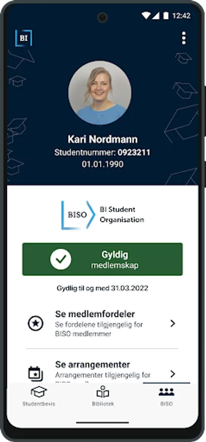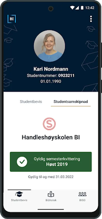 Digital student ID, digital library card and BISO membership proof for students at BI Norwegian Business School. The App is accepted as a valid student ID by the student welfare organization and be transport service companies in Norway. You have to be registered as an active student at BI to get a valid student ID. The digital library card may be used at all BI libraries. The App also shows if you have a valid BISO membership and you can buy BISO membership directly in the App.