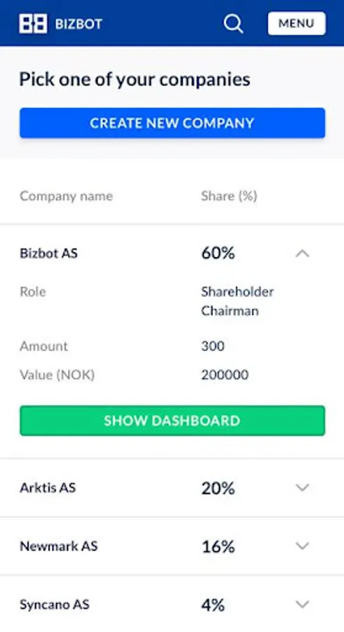 The first product BizBot launches a digital register of shareholders, which will be the core of all future product development. Through market baddest database consisting of all corporation and associated persons in Norway, the next step is to develop a search tool that surpasses anything you've used before. BizBot their placement tool will take you through the paper mill at 5 digital steps, which anyone who has carried out an issue before guaranteed appreciate. Never again will you have to backdate a board meeting or wait for a signature and payment.